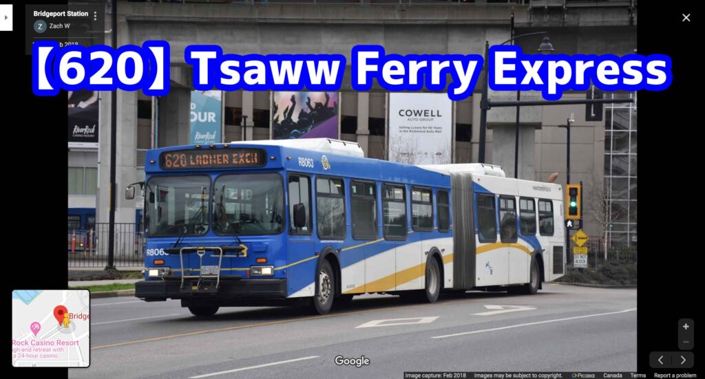 2.「【620】Tsaww Ferry Express」へ乗り、「Southbound Hwy 17 @ 52 St」で降ります。
