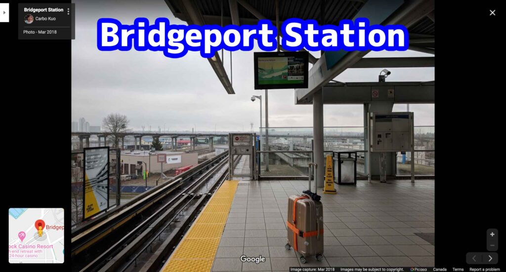 1.スカイトレインを利用して、「ブリッジポート駅(Bridgeport Station)」まで行きます。