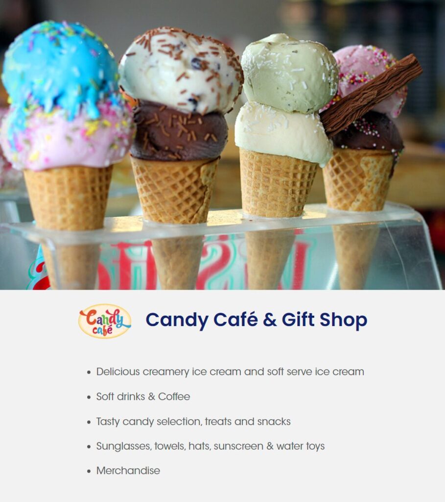 ピザやグリルなどのレストランもあり、暑い夏の最高なお供のアイスクリームも食べれます🍕🍨