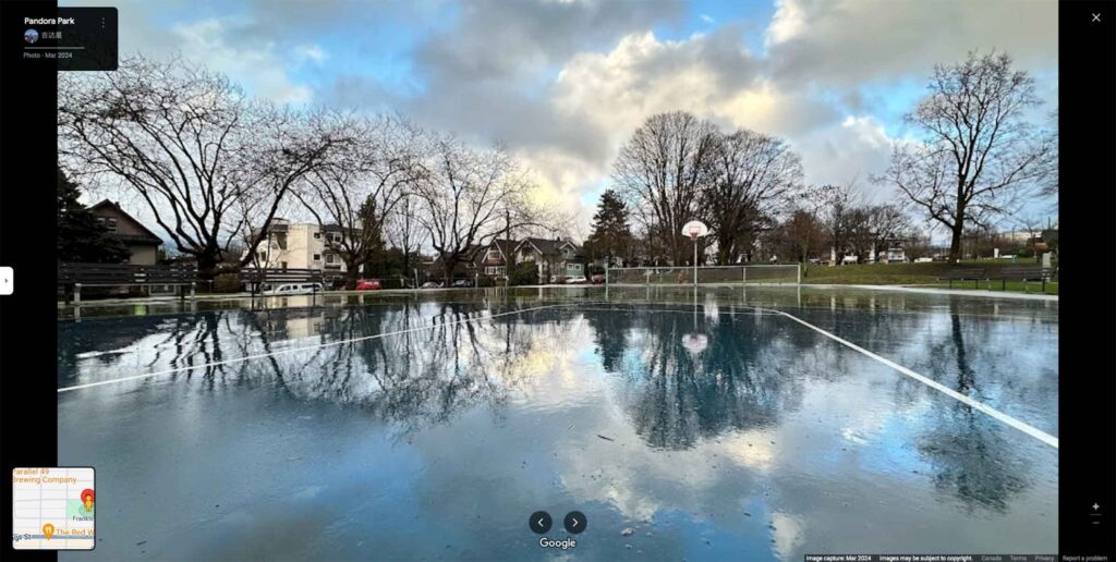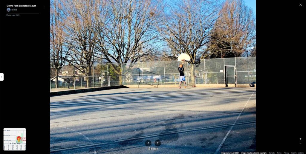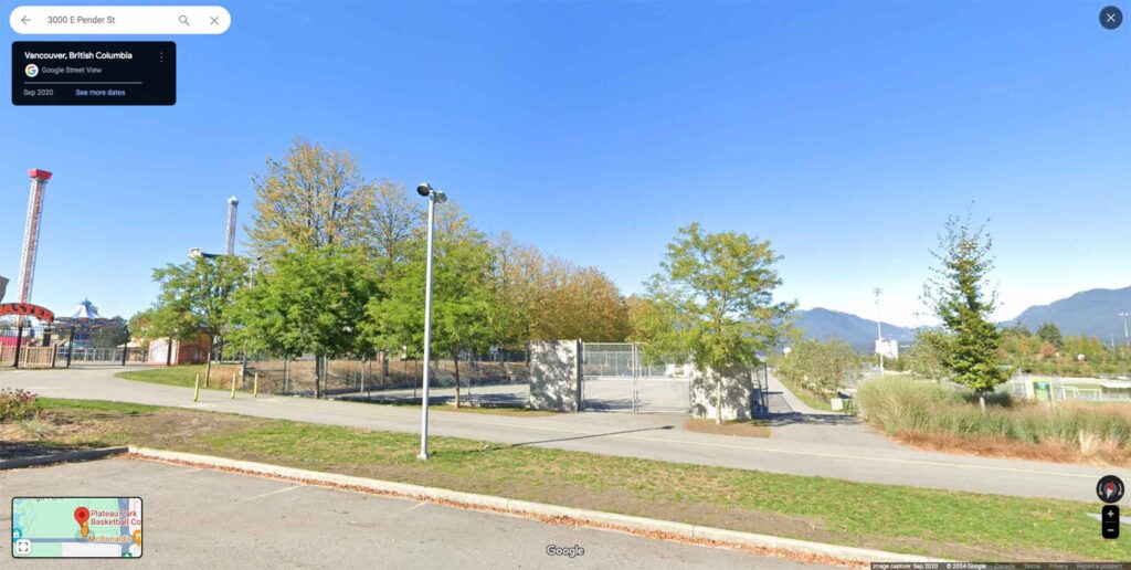 バンクーバーにある遊園地 PNE 付近にはバスケットコートがある公園が 2つあります🏀