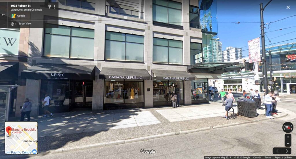 カナダのバンクーバーのダウンタウンにある【ロブソン通り(Robson St)】にバナナ・リパブリックの店舗があります😌