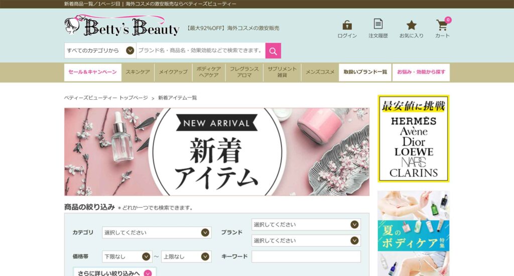 ベティーズビューティーでは新着のコスメを続々と入荷しているので、常に新しい化粧品やスキンケア商品が買えます‼️