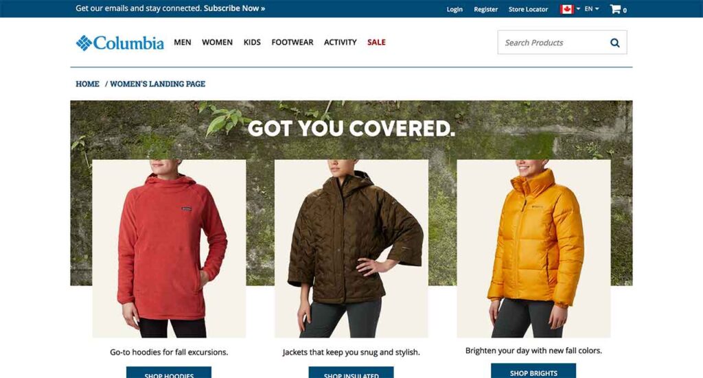 - バンクーバーにあるColumbia(コロンビア)の販売店