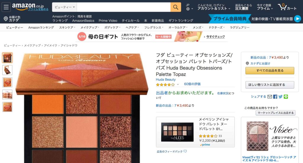 アマゾンで一番評価が高い商品は【フダ ビューティー オブセッションズ/オブセッション パレット トパーズ/トパズ】でした✨