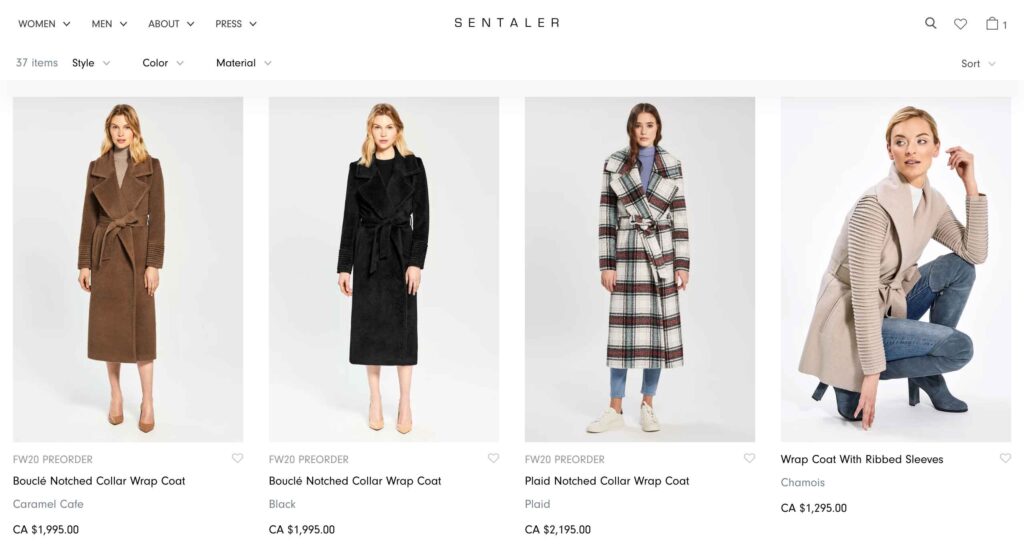 ホームページ:Sentaler Canada Luxury Outerwear – SENTALER