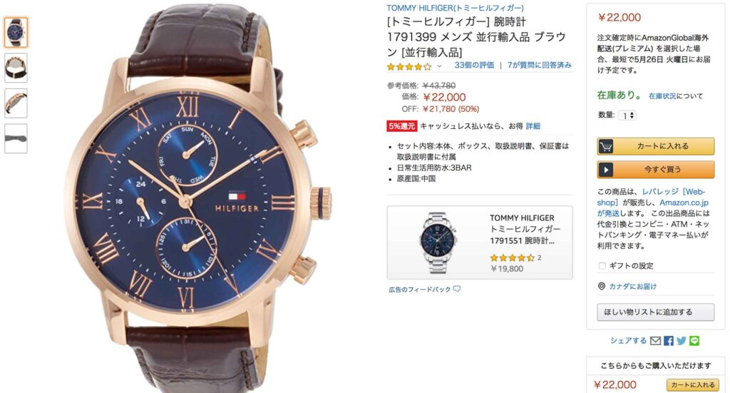 アマゾンで一番評価が高い商品は【[トミーヒルフィガー] 腕時計 1791399 メンズ 並行輸入品 ブラウン】でした⌚️