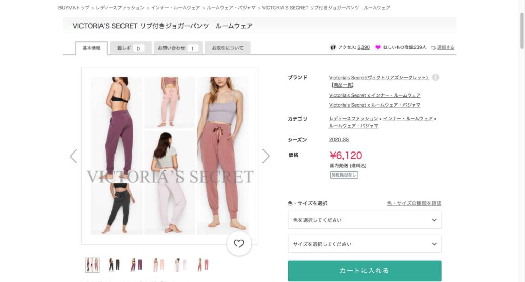 種類が豊富にあるBUYMAで一番評価が高いヴィクトリアズ・シークレットの商品は「VICTORIA’S SECRET リブ付きジョガーパンツ ルームウェア」でした😌