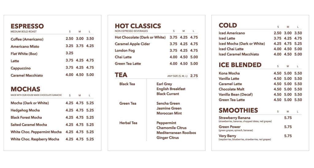 コーヒーのスモールサイズの値段が$2.5と他の値段もそこまで高くなく、24時間営業カフェということを考えると安い料金だと思います😌