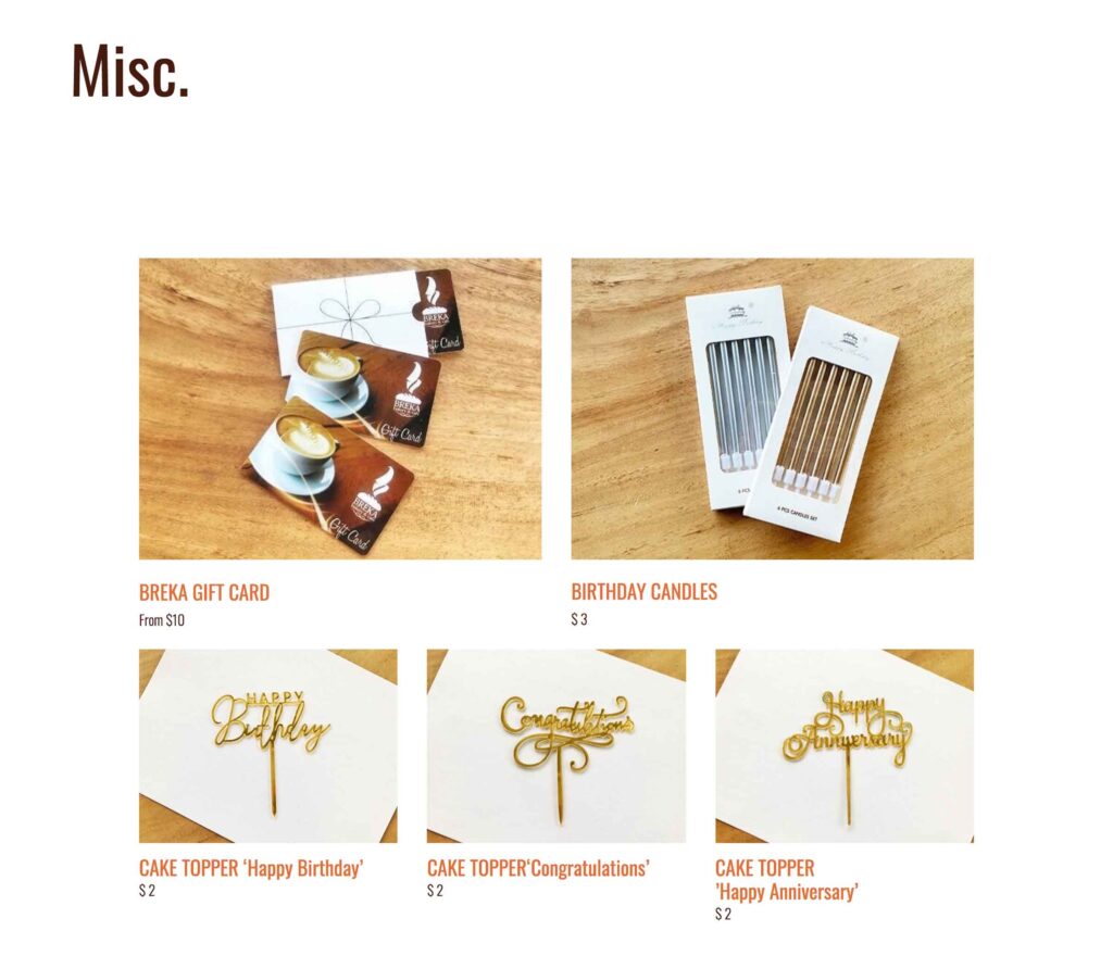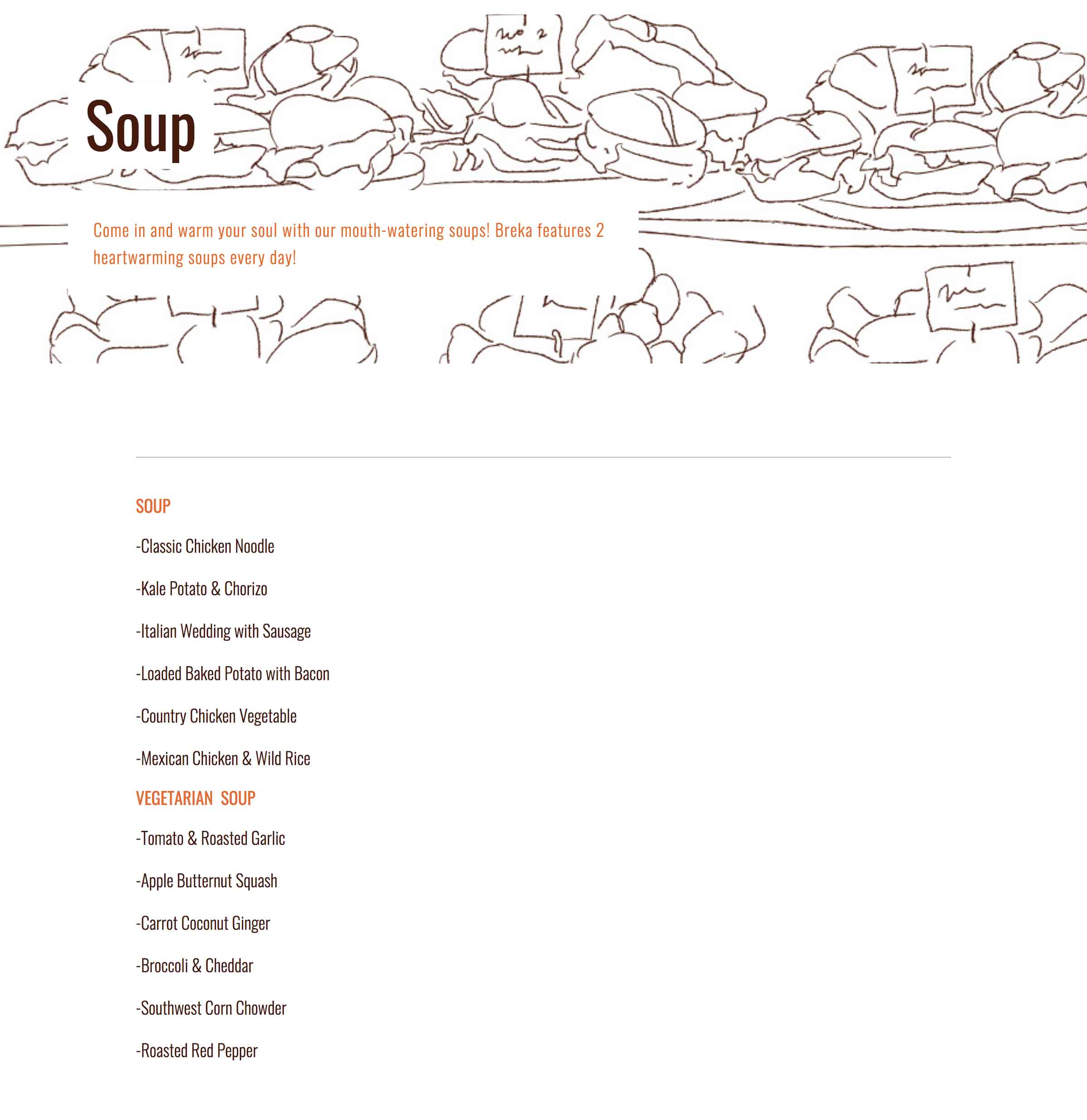 Breka Bakery & Cafe のメニューは下記のメニューになります。