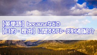 英語【英単語】becauseなどの【目的・理由】に関するフレーズを6個紹介 この記事では『【英単語】becauseなどの【目的・理由】に関するフレーズを6個紹介』について紹介をします。英会話や英作文で目的や理由を伝えたい時にぜひ参考にしてくださいね‼️【英単語】becauseなどの【目的・理由】に関するフレーズを6... 2021.01.05英語