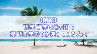 留学【結論】語学留学でどの国で英語を学ぶのか迷っている人へ こんにちは、Yuta さん。将来英語を学ぶために語学留学を検討していますが、どの国で英語を学ぶのか迷っています。どの国で英語を学んだ方が良いかオススメはありますか?了解しました😌この記事では語学留学でどの国へ留学をするのか迷っている人のため... 2021.01.06留学英語