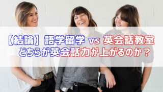 英語【結論】語学留学 vs 英会話教室どちらが英会話力が上がるのか? こんにちは、Yuta さん。英会話力を伸ばしたいと思っていますが、語学留学をするか英会話教室へ通うのかで迷っています。意見を教えてください。了解しました😌意見じゃなくて、この記事で語学留学か英会話教室どちらが英会話力が上がるのか結論を答えま... 2021.01.03英語