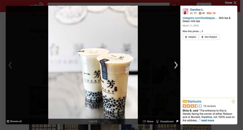 バンクーバーのダウンタウンのRobson St(ロブソン通り)にはたくさんのバブルティーショップがあり、「YiFang Taiwan Fruit Tea」は人気のバブルティーショップの1つです😌