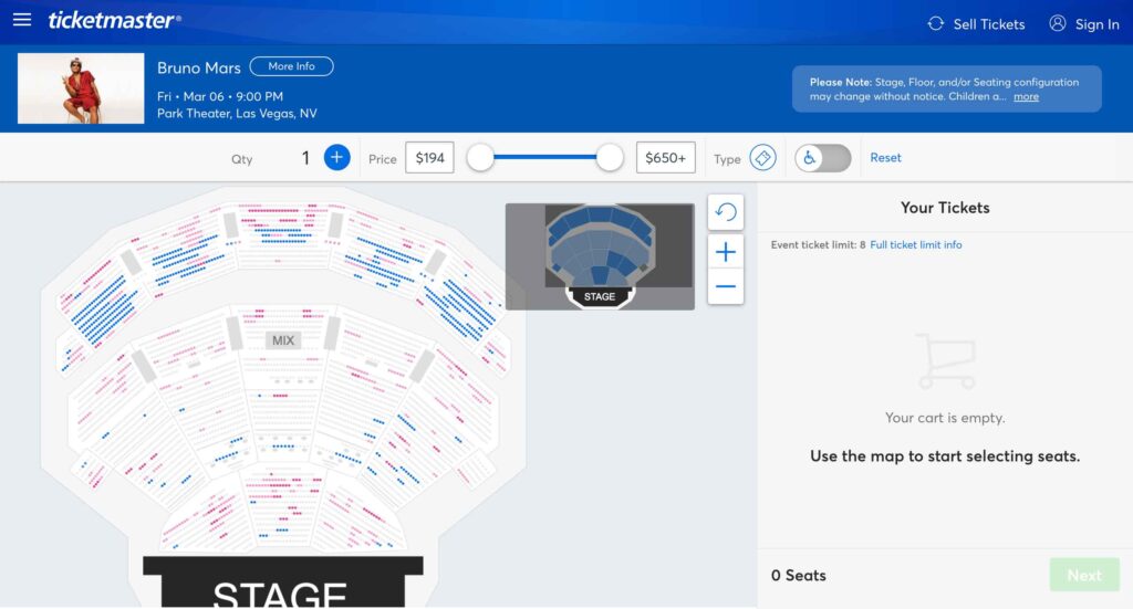 ラスベガスで開催されるブルーノマーズのライブのチケットの購入方法はticketmasterを利用します。
