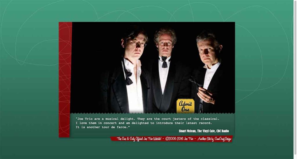 内容:1989年に結成されたJoe Trioのメンバーは、観客を魅了する素晴らしいパフォーマーで、バイオリン、チェロ、ピアノを演奏し、観客を笑わせます。