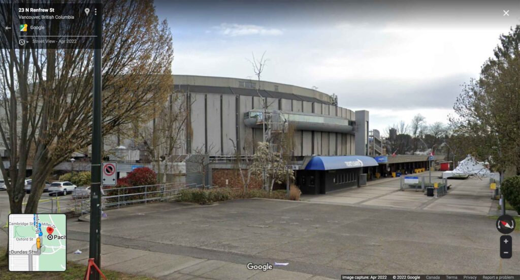 3. N Renfrew St を3分ほど歩くと Pacific Coliseum に到着