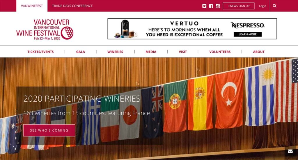 毎年2月から3月にかけて開催される「バンクーバーインターナショナルワインフェスティバル」は、多くのワイン愛好家が世界でノミネートされているワインをテイスティングや購入できるイベントです🍷