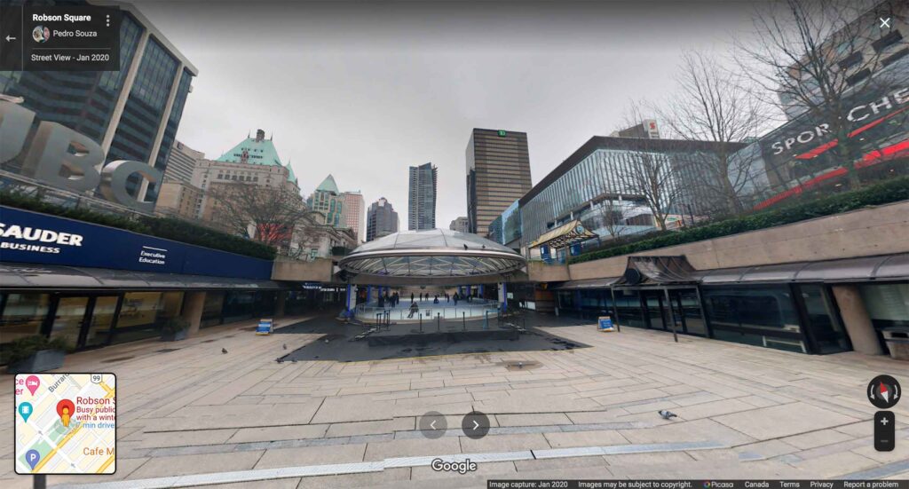 バンクーバーのダウンタウンで開催されるアイススケートリンクの場所は【Robson Square】です⛸