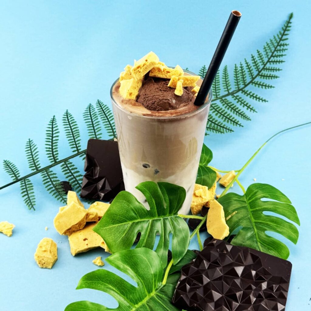 持続可能なコミュニティに焦点を当てた遊び心のあるチョコレート&アイスクリームショップ