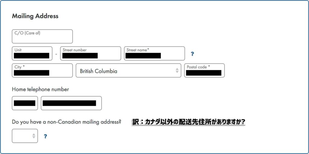 Community mailbox などの郵便物用の住所が別途ある方は Mailing Address は Community mailbox の住所を登録しましょう。