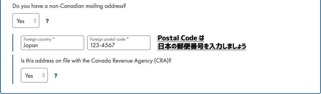 また CRA の Mailing Address も同じように登録していないとタックスリターンできません。