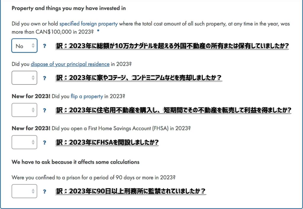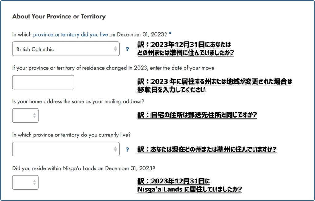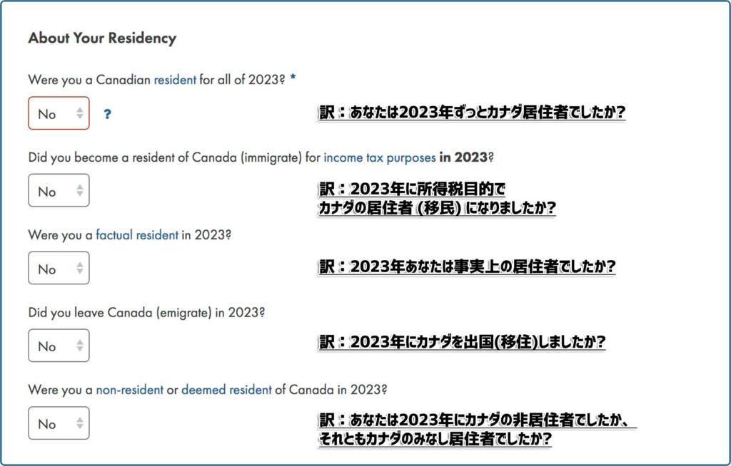 例えば2023年4月からなど2023年の途中からカナダに居住をし始めた場合は、あなたの居住にもよりますが下記のように回答して問題ないかと思います。