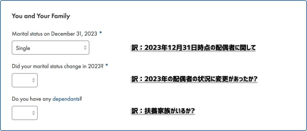 また扶養家族は下記に該当するあなたの収入などに頼っている家族が存在するかの質問となります。