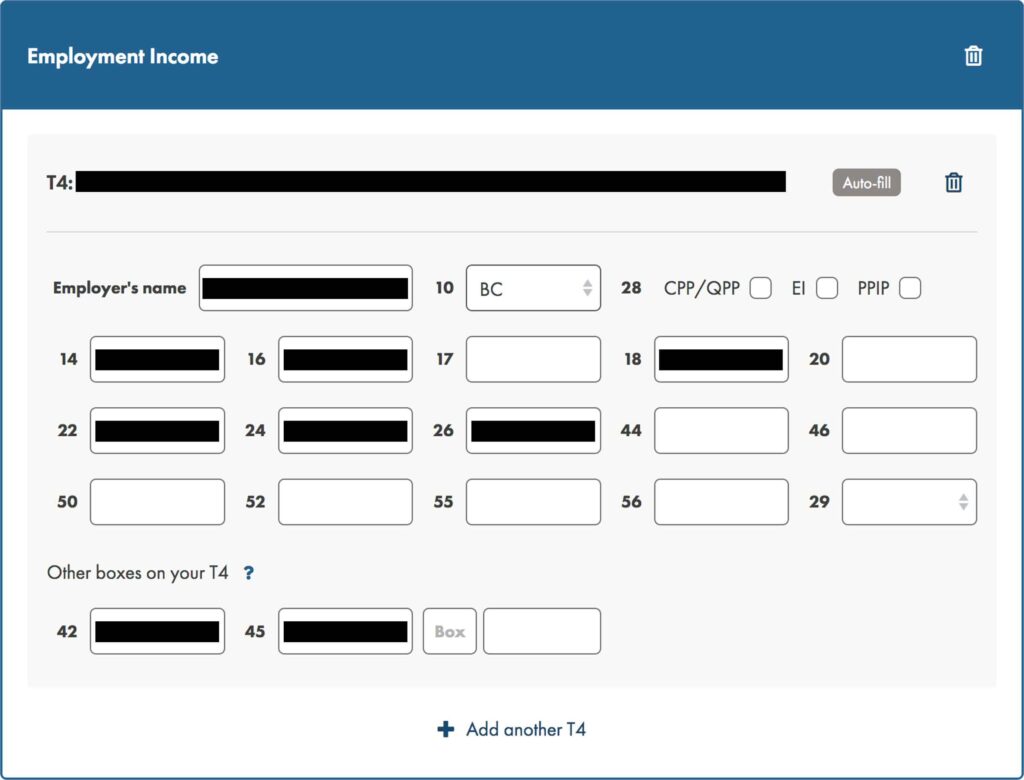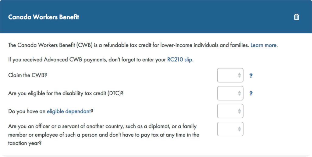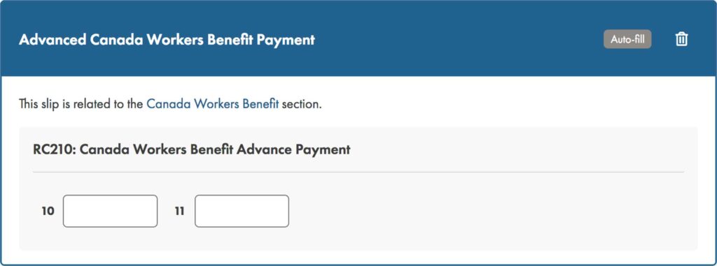 タックスリターン年にカナダ労働者給付金から受け取った給付金を記入します。