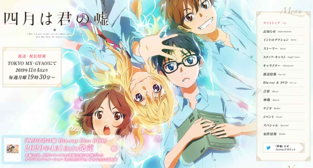 月刊少年マガジンで連載された『四月は君の嘘』の英語名は日本語を直訳した【Your lie in April】になります。