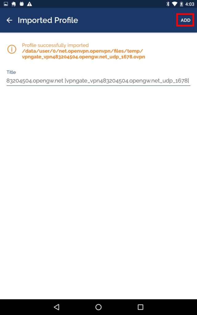 8.7を行うと「Profile successfully imported」とオレンジの文字で表示がされるので、【ADD】を選択します。