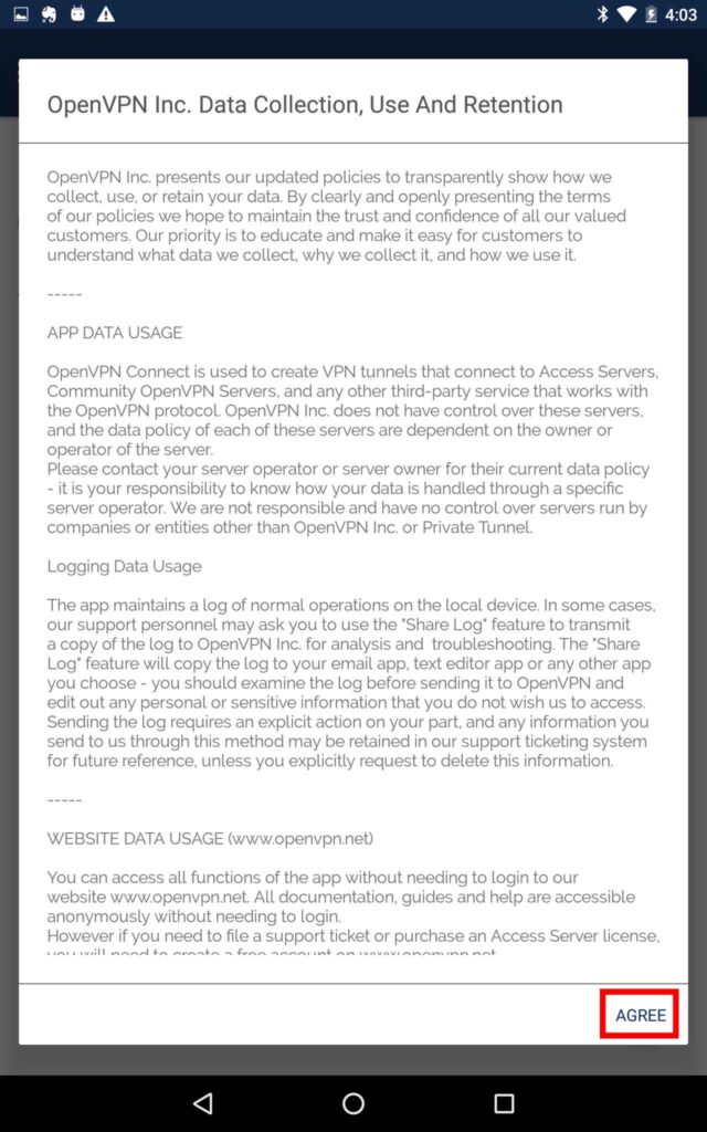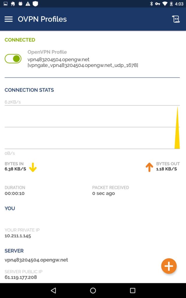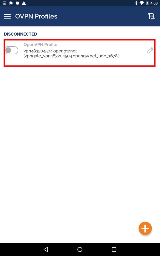 10.「OVPN Profiles」に先ほど追加したVPNの設定情報が「DISCONNECTED」の下に表示されますので選択します。