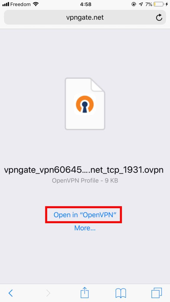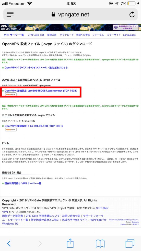 - VPNを利用するiPhoneで「VPN Gate 筑波大学による公開 VPN 中継サーバープロジェクト」のページを開く