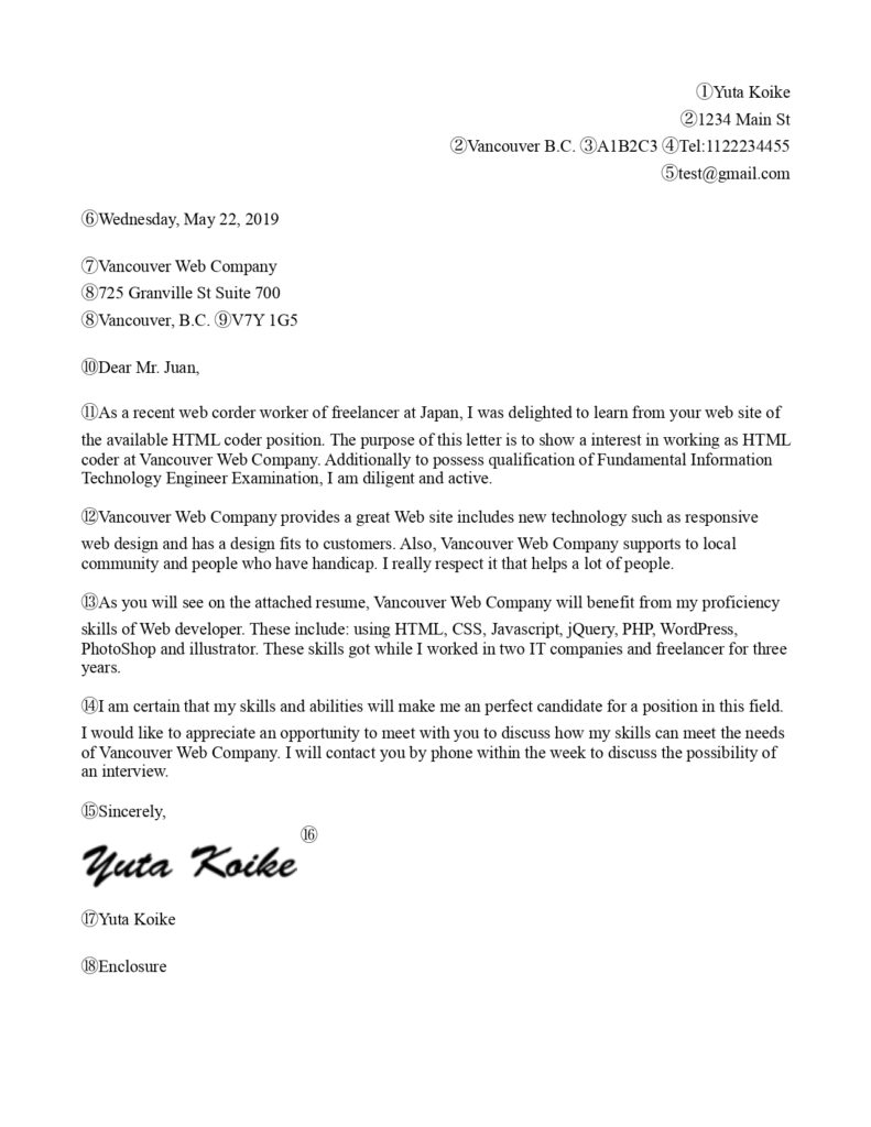 それではカナダのカバーレターの書き方を写真と共に解説をします。