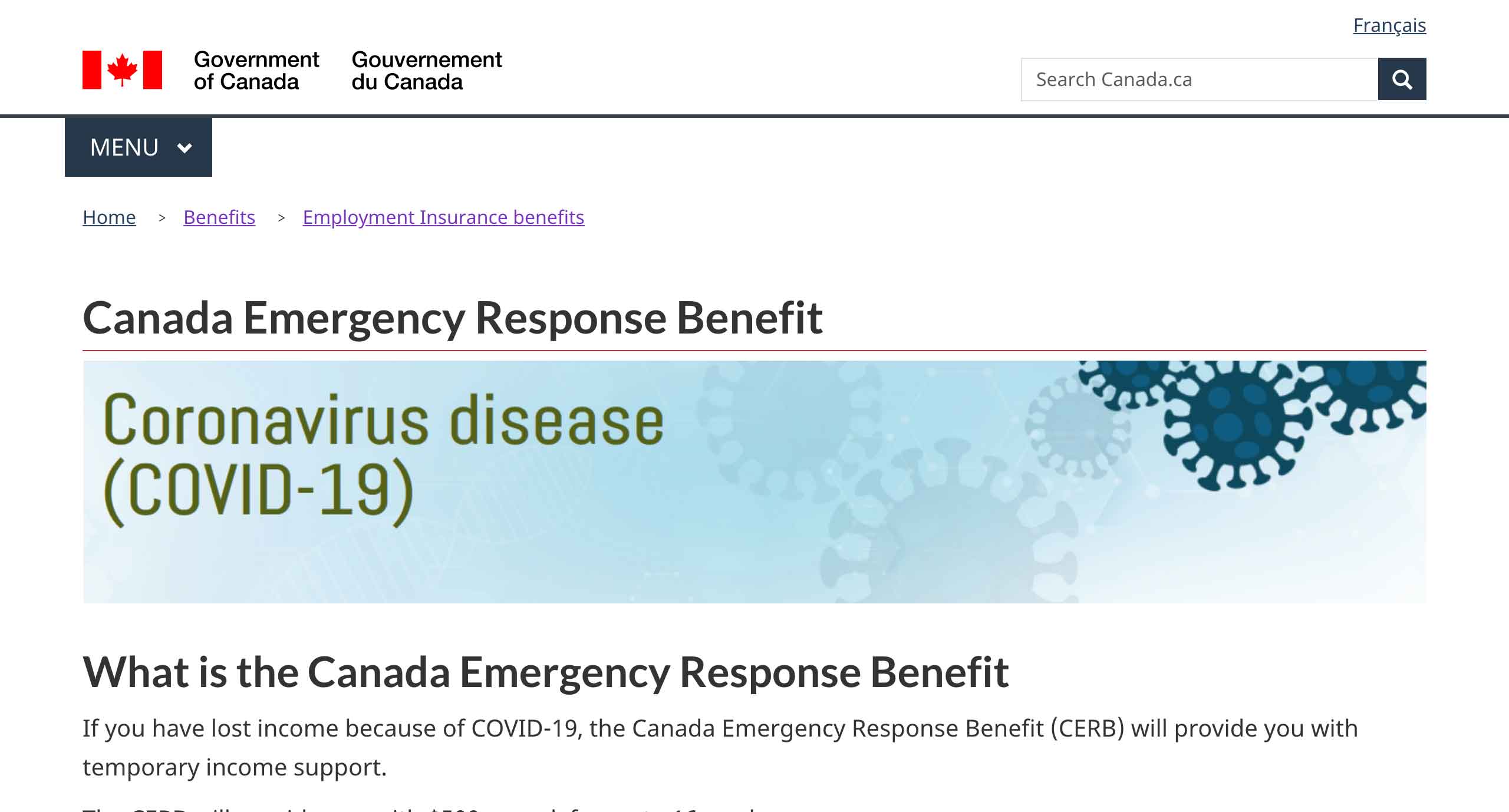 CERBの詳しい内容については「Canada Emergency Response Benefit – canada.ca」のサイトで確認をしてください。
