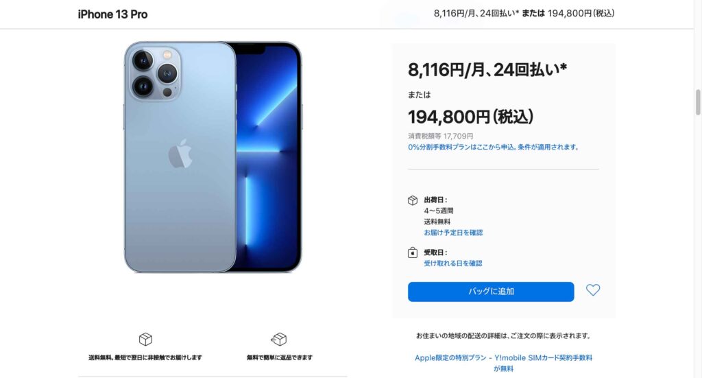日本でiPhone 13 Pro Maxの1TBモデルを購入すると194,800円(税込)です。