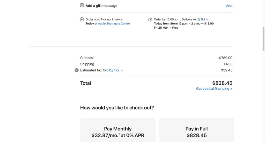 日本のソフトバンクやauのようにカナダにも大手3大携帯会社のBell, Rogers, Telusがありますが、携帯会社で買うよりも Apple 公式で購入した方が $22ほど安くなります😌
