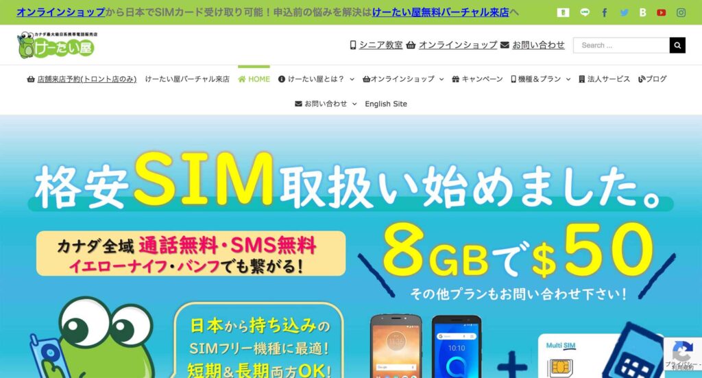 またすでにカナダに在住をしていて、けーたい屋の店頭へ訪れるのが困難な人は「日本国内でSIM受け取り可能!格安シムオンラインショップ | けーたい屋 公式サイト | カナダ最大級日系携帯電話販売店」のリンクから申し込みをすることで、日本申し込みと同じくSIMカードの発送料金($10)が無料になります🚚