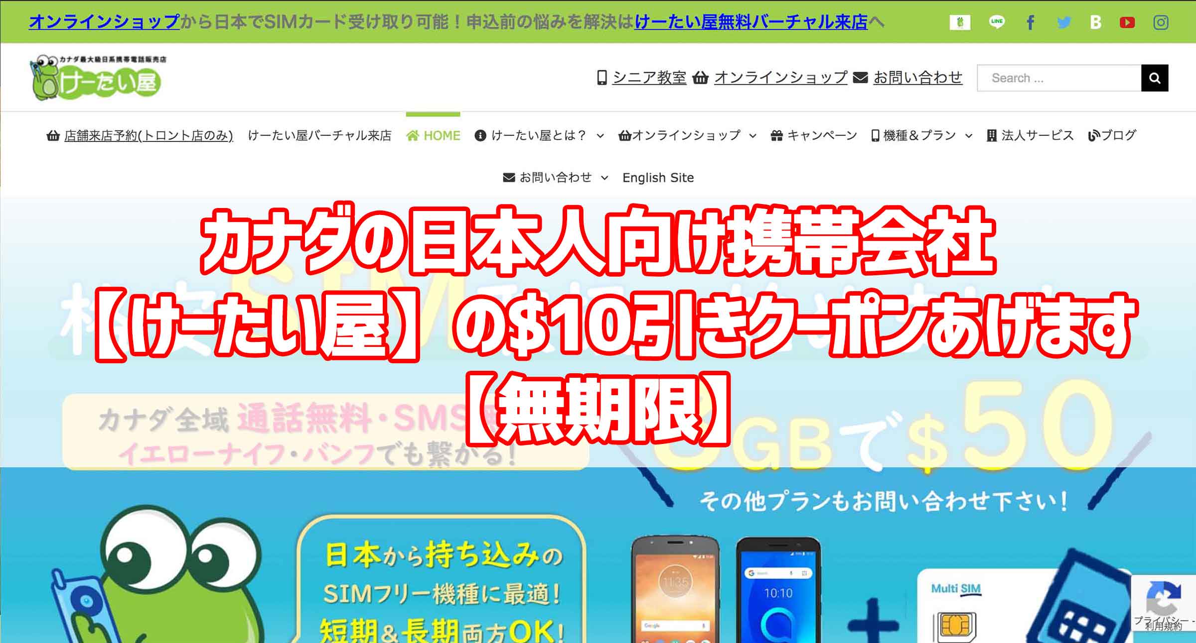 今回は「カナダの日本人向け携帯会社【けーたい屋】の$10引きクーポンあげます【無期限】」について紹介をしました。