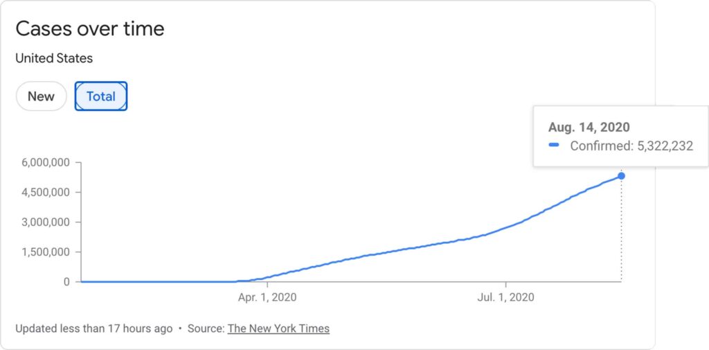 この記事を執筆している2020年8月15日現在のアメリカとカナダの感染者数は