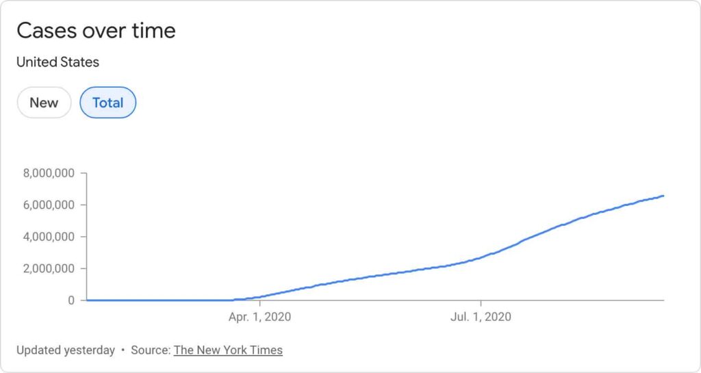 - アメリカ:感染者数6,612,789 人、感染者数世界1位 6,612,789