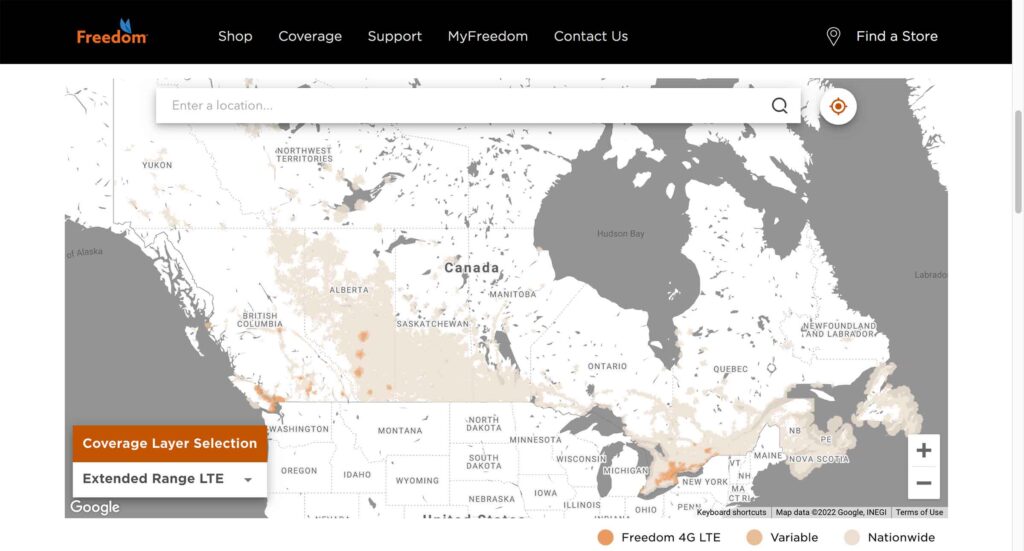 「Freedom Mobile | Network Coverage – Nationwide Cell Phone Signal Map」のサイトから Freedom が提供しているエリアの確認ができますので、あなたが滞在している地域で Freedom が使えるのか確認しましょう🔍