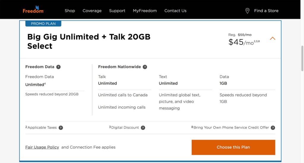 公式サイト-プランページ:Freedom Mobile | Cell Phone Plans – Fast LTE, Talk & Text