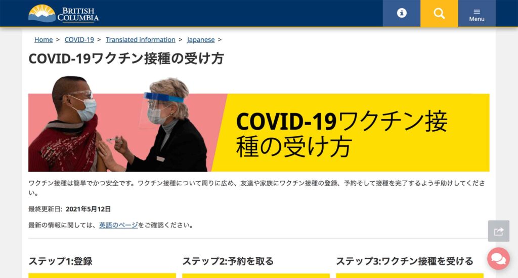 1 COVID-19ワクチン接種の受け方 – ブリティッシュコロンビア州のサイトを開く