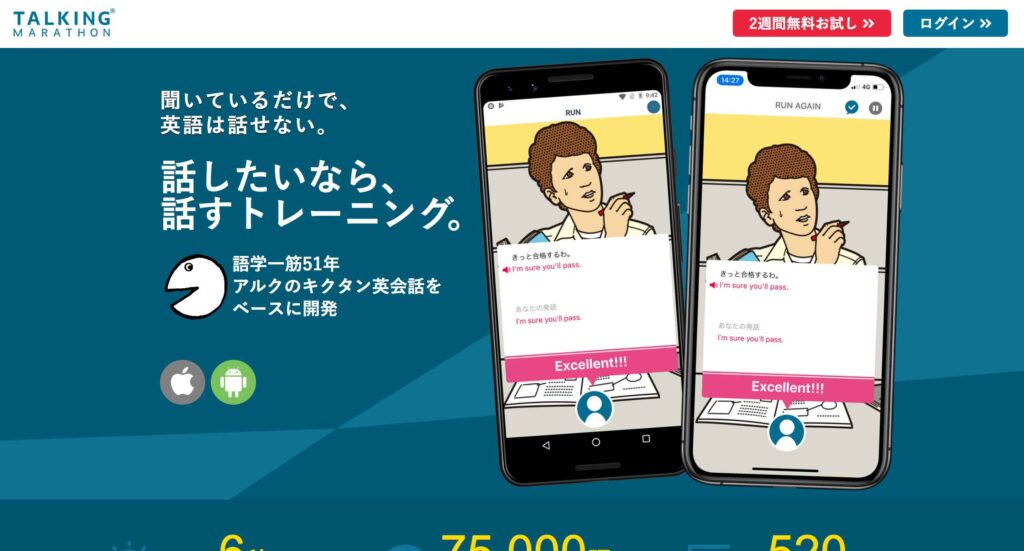 スマホ自主トレーニングアプリ【トーキングマラソン】はWEB英語辞書で有名な「株式会社アルク」が提供をしているスマホを使った英会話トレーニングアプリです‼️