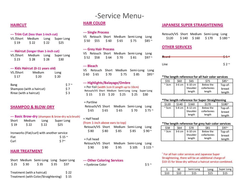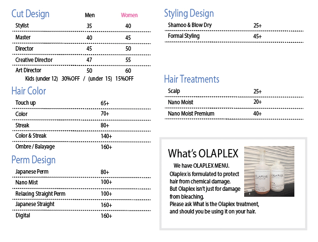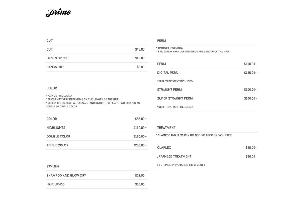 Chura Hair Salon – Primo の料金は下記の通りです。
