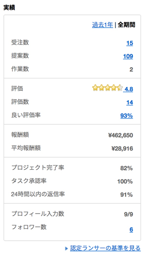 仕事をたくさんすることでランクも上がり、ランクが上がれば上がるほど企業からの信頼も上がるので、仕事をたくさん受注できたり、報酬額が上がったりするのでオススメなサービスです。