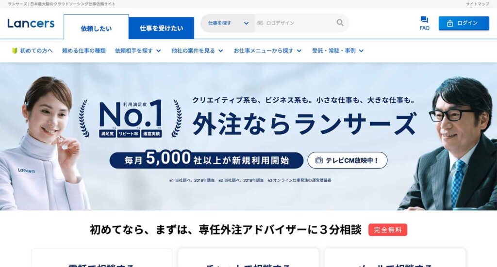 上記で紹介をした仕事は クラウドソーシング「ランサーズ」 を利用することで仕事を探すことができます。