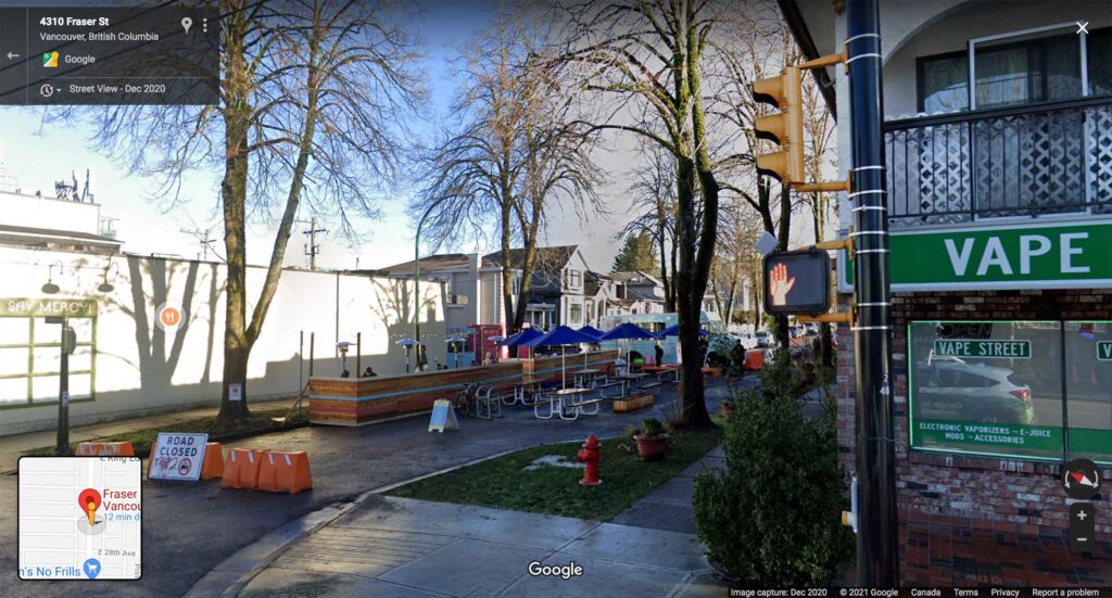 Cambie and 17th Avenue と同じように、臨時で机や椅子などが設置され、そこでお酒を飲むことができます🍺