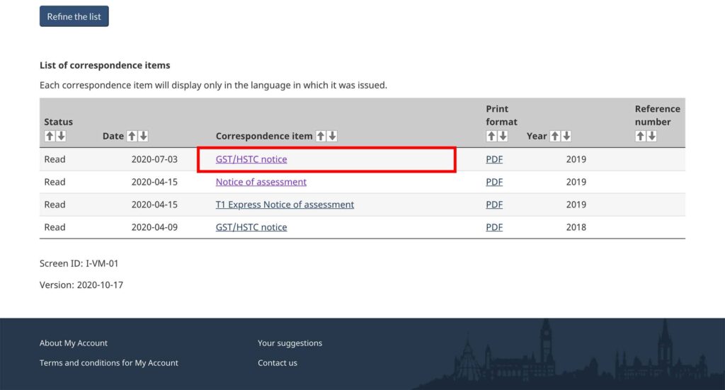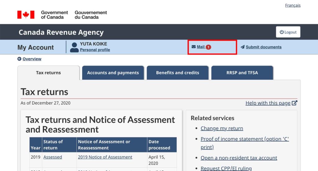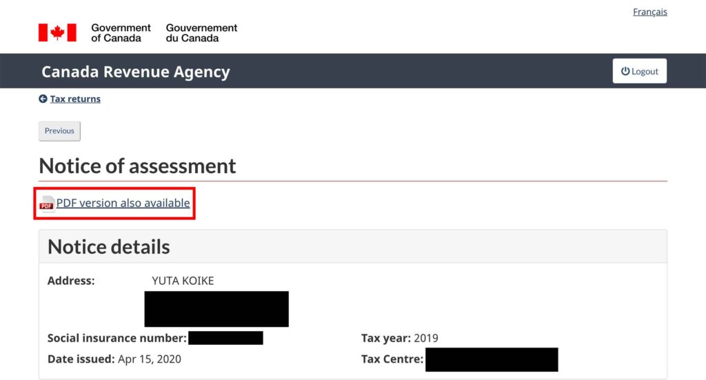 こちらはCRA(Canada Revenue Agency)へログインをすることで入手可能になります。