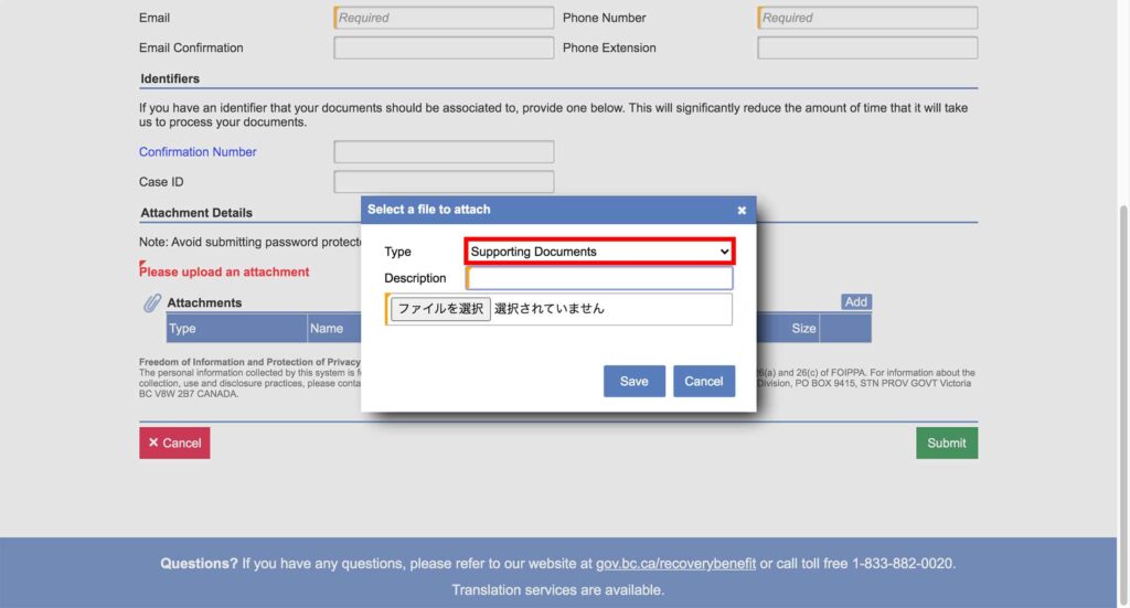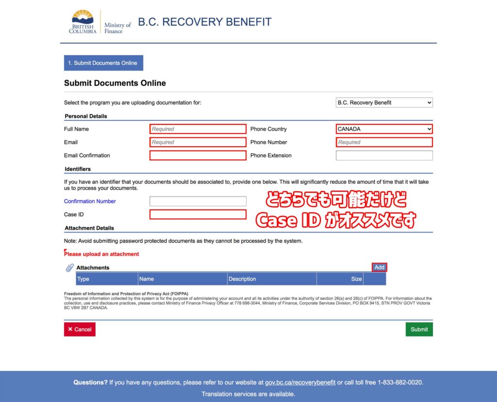 B.C. Recovery Benefit Information – Case ID: x-xxx-xxx-xxx の書類提出方法